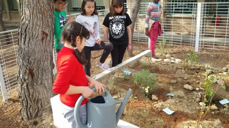 aromáticas, aprendiendo a identificarlas, y sus diferentes usos. Además hemos colocado los palos para sujetar las tomateras, hemos plantado un granado y hemos producido abono en un pozal de ortigas.